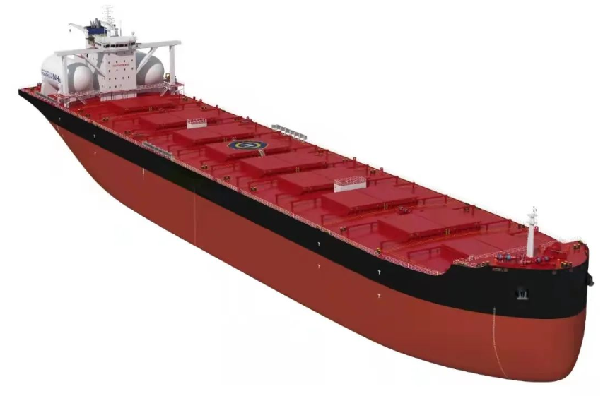 为满足船东在大型散货船上应用氨燃料的迫切需求,青岛北海造船的技术设计团队积极作为,在结构优化、总体研究、燃料舱选型与布置、氨燃料系统研究、危险源识别分析等方面做了大量工作,高效完成了船型设计方案,并满足了美国船级社(ABS)“氨燃料预留2级(结构)”要求,可在未来转换为氨燃料运营。