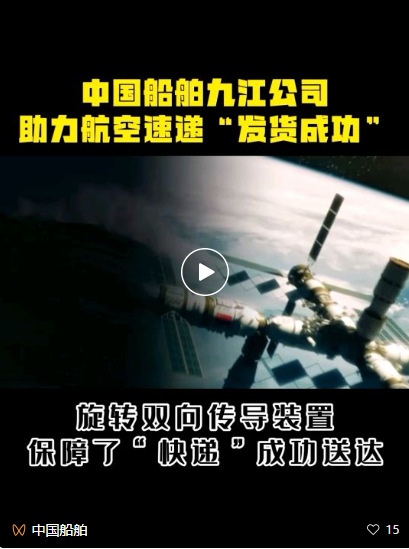 天舟四号货运飞船是我国空间站建造阶段的首发航天器,其作用是为空间站运输物资、补给燃料、下行废弃物,具备并网供电、应急通信等能力,确保空间站组合体在轨平稳运行。在本次发射任务中,中国船舶集团旗下中船九江承担旋转双向传导装置的研制工作,保障了“天舟四号”快递成功送达。作为空间站建造阶段的“首艘船”,承载着中船九江人的智慧与心血。