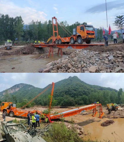2021年7月底,中船应急生产制造的应急机械化桥、应急模块化桥助力河南多地打通抢险救援通道。