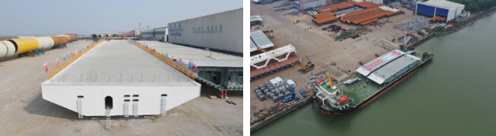 针对发运过程,武昌造船科学编制装船运输方案,自2023年1月7日伶仃洋大桥边跨第一片钢箱梁顺利吊装,到4月20日完成最后一片钢箱梁吊装,在104天的时间内,项目部圆满完成了伶仃洋大桥全桥107个节段发运工作和现场配合吊装工作,有力保证了伶仃洋大桥连续吊装施工。