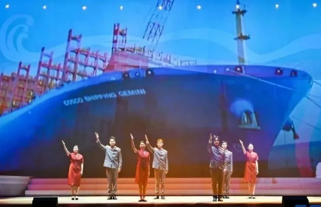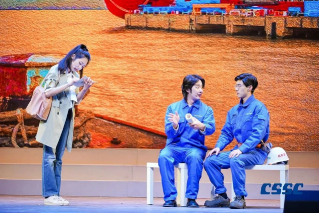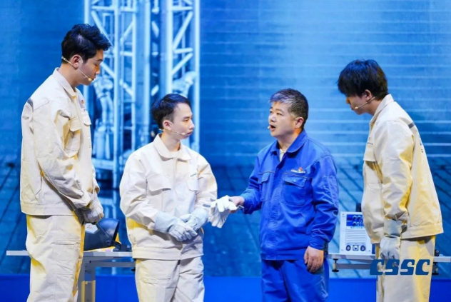 现场,来自中国船船集团江南造船(集团)有限责任公司、沪东中华造船(集团)有限公司、上海外高桥造船有限公司、中船动力(集团)有限公司和中国船舶集团公司第七〇二研究所的青年职工将真实工作案例与理论原文结合,将“发展新质生产力”作为工作方向与指引,将他们的造船故事亲身演绎。故事从《船舶青年说》起航,共讲述了五大篇章,分别为江南造船如何延续百年初心、沪东中华造船LNG船毫厘铸匠心、七〇二所从“蛟龙”号到“奋斗者”号将深潜进行到底、外高桥造船“爱达?魔都号”大型邮轮“4个120天”的极限挑战、江南造船“钢铁心脏”工程师攻克大型作战舰建造的不凡创新路,台词铿锵有力、情感真挚流淌,绘就了一幅精彩的中国船舶梦画卷。