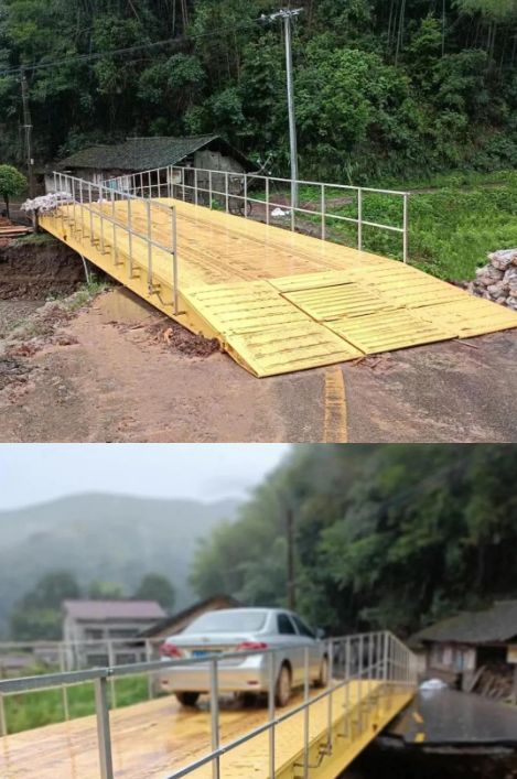 救援结束后轿车通过应急机械化桥