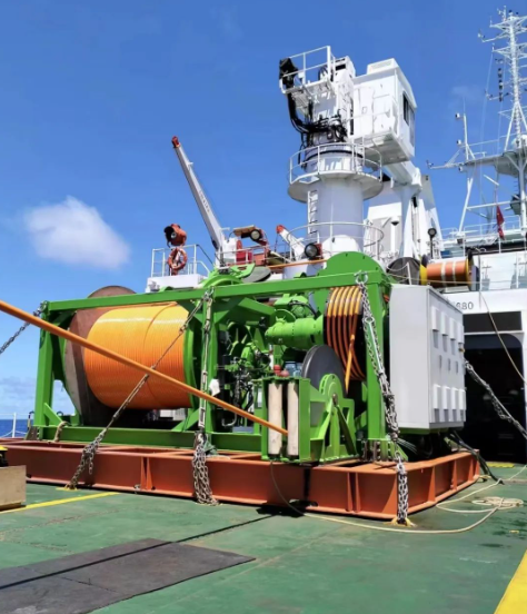中国船舶集团七〇四所研制的深水重载布放回收绞车助力“开拓二号”布放回收全流程作业,为其刷新纪录等一系列复杂的深海采矿试验提供技术支撑。
