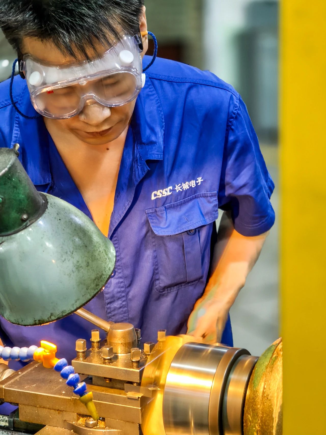 武昌造船——机电事业部划线钳工翁方成顾不上满脸的汗水,全神贯注为水工闸门结构部件划上机械加工参考线。