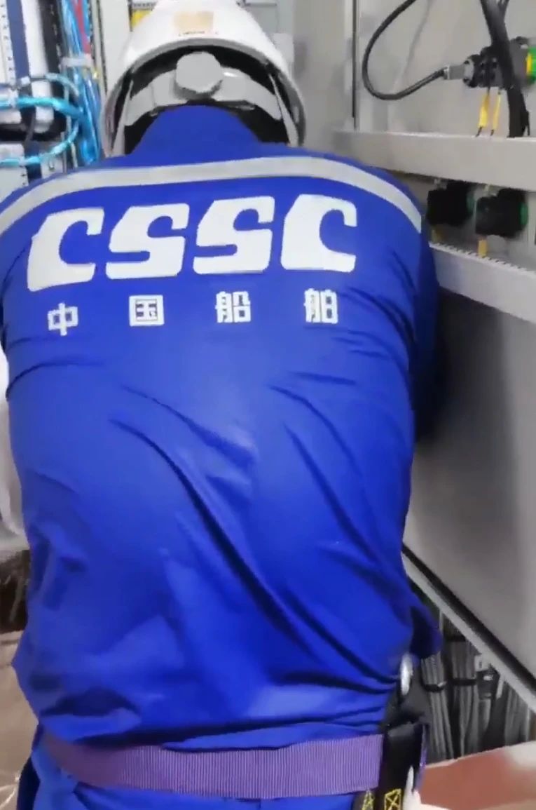 中船发动机——调试人员顶着高温在认真安装传感器,汗水湿透了衣裳。