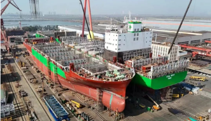黄埔文冲切实增强自主开发能力,坚持聚焦主建船型,持续推广自主开发的“鸿鹄”集装箱船和“海鲸”散货船系列,成功打造1900TEU集装箱船、3000TEU集装箱船、2400TEU甲醇双燃料集装箱船和85000吨散货船等明星船型,形成品牌迭代升级和谱系化;紧抓船舶行业绿色新能源的机遇,黄埔文冲以市场需求为导向,承接了多艘以甲醇、氨燃料等绿色能源为动力的集装箱船和散货船订单。
