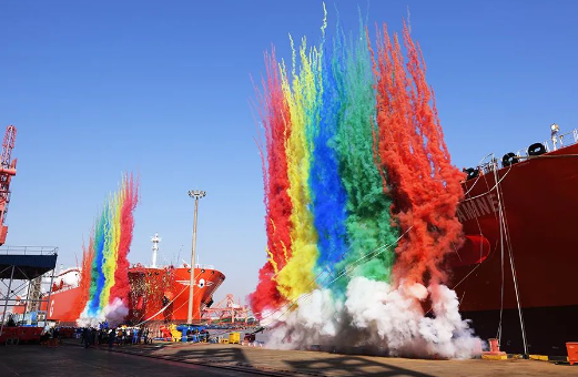 12月16日,由中国船舶集团旗下江南造船为西南海运公司建造的99000立方米超大型乙烷运输船“GAS CAMELLIA”号和“GAS JESSAMINE”号举行双船命名仪式