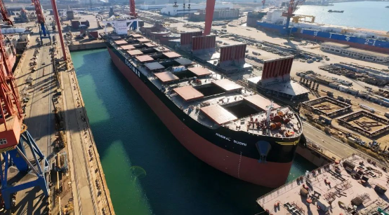 12月28日,中国船舶集团旗下北海造船为比利时CMB公司建造的21万吨氨Ready散货船50号船从1号坞按计划出坞,标志着公司全年95个大节点全部按计划圆满完成。