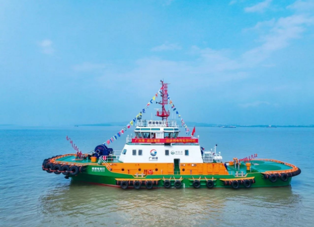 近日,由中船集团六〇五院设计的华南地区首艘纯电拖轮“穗港电拖01”号在广州港交付。该船将重点服务于广州核心港区,承担船舶拖带、靠离泊及护航等海上作业,助力广州港打造“零碳港口”。