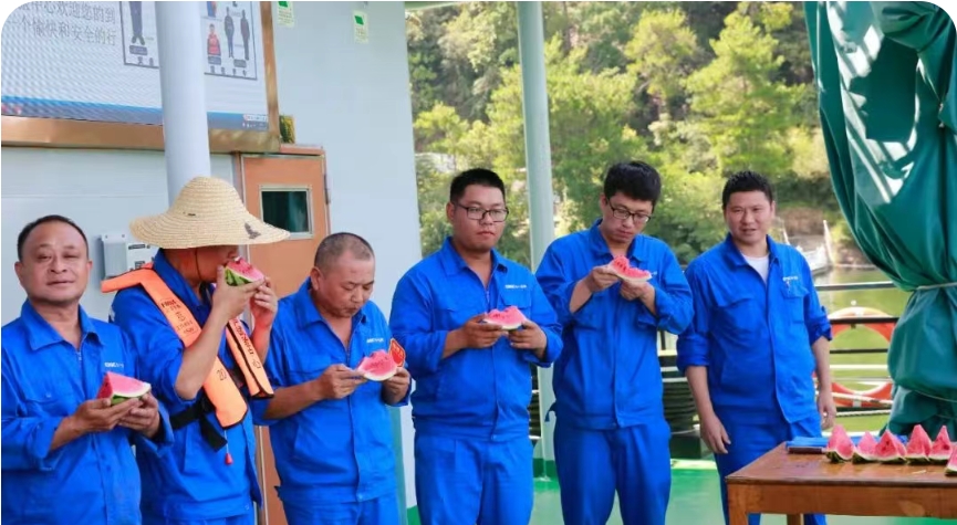 7月杭州的气温已经逼近40℃,千岛湖上更是热浪灼人。试验平台的“焖炉”和“铁板”上,不少项目组正在追赶进度,大家都是汗如雨下。七一五所党委为奋战在科研生产一线的员工送去防暑物资,传递对员工的关怀和鼓励。