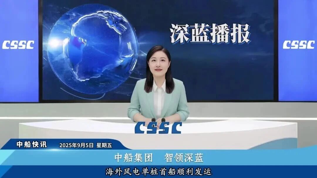 本期《深蓝播报》内容提要:为纪念抗战胜利80周年,中船集团发布首部AIGC创意短片;大连造船山船重工一船交付、一船命名;黄埔文冲文船重工海外风电单桩首船顺利发运;七院团委组织爱国主义观影团日活动。