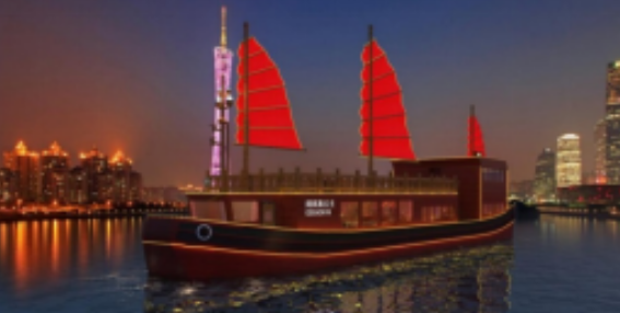 ????160客位纯电动客船“阔阔真公主号”总长36米,型宽8米,型深3米。该船是仿七百多年前元朝阔阔真公主远嫁波斯时乘坐的古船建造而成,有“福船送福”的寓意。建造后将行走于珠江,夜游展示亚洲文化交流的传奇。