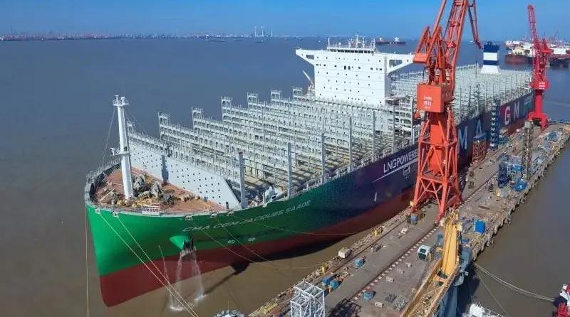 防疫复工两手硬|沪东中华建造的全球首艘23000箱液化天然气动力集装箱船试航