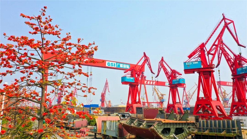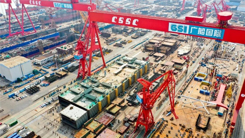 客滚船薄板生产线刚刚投产,分段制作昼夜不息、井然有序