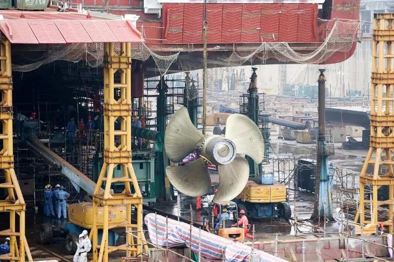 ????广船国际自2月10日起复工复产,其中阿尔及利亚客滚船建造是广船国际重点工作之一。广船国际先后克服劳动力不足和资材供应受阻等客观困难,逆“疫”而上,确保该船顺利出坞。