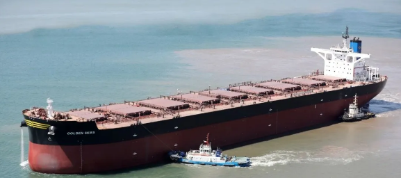 近日,中国船舶集团旗下大船集团渤船重工联合中船贸易共同为挪威Frontline公司建造的一艘21万吨散货船 “GOLDEN SKIES”号交付。该船是渤船重工为FrontLine公司建造的4艘21万吨系列散货船中的第二艘,也是渤船重工复工复产以来交付的第三艘21万吨散货船。