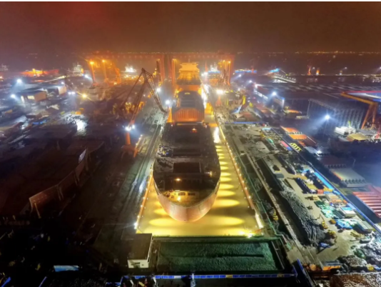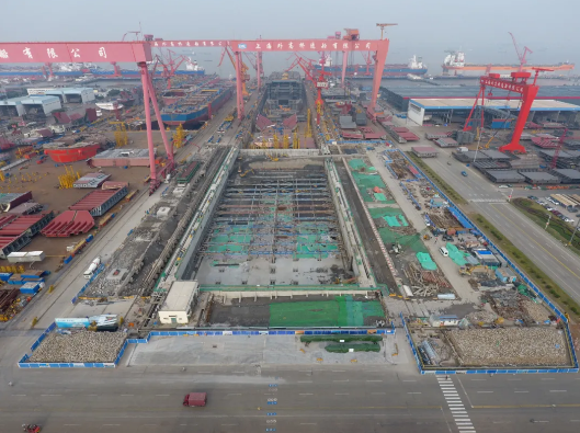 ——第二次改造,2018年10月至2020年6月,再次接长200米,建成后总长达740米。通过中间坞门分别形成前后两个独立坞室,以满足年产1.5艘大型邮轮及3艘VLCC纲领产品要求。