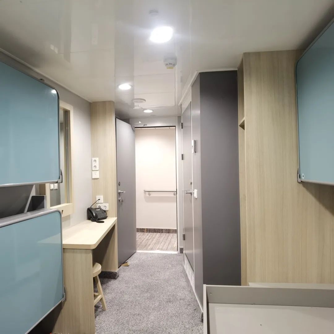 实际上,通过“均衡有序”的分工策划,该船出坞前已完成了3甲板以下98%的舱室涂装工作,涂装完整性实现了突破和提升。 内装材料几乎100%国产化,该船样板舱品质得到了意大利船东方的专家及艺术家的充分认可!