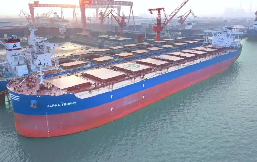 1月1日上午,中国船舶集团旗下外高桥造船联合中船贸易建造的21万吨纽卡斯尔型散货船“ALPHA TROPHY”号签字交船,这是中国船舶企业新的一年完工交付的第一艘船,开启中国船舶制造业2022年昂扬奋进新征程。