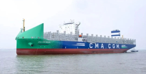 “达飞·贝伦”号载箱灵活、技术领先、节能环保,是新一代绿色环保、高效节能型集装箱船。