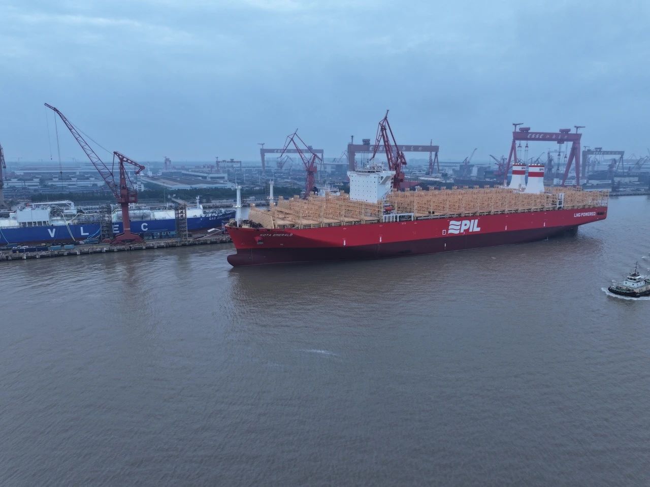 10月15日,中国船舶集团旗下江南造船联合中船贸易为太平船务建造的14000TEU液化天然气(LNG)双燃料动力系列集装箱船首制船“KOTA EAGLE(鹰城)”号和2号船“KOTA EMERALD(翠城)”号同日命名,其中“KOTA EAGLE(鹰城)”号于当日签字交付。