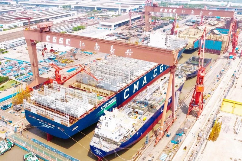 ????众所周知,船坞是船舶总组搭载的场所,是造船生产的核心资源。江南造船3号船坞长580米、宽120米,是目前国内在用的最大船坞。为提升船坞利用效率,江南造船采取“双线并造”模式,即一批次液化气船和一批次超大型集装箱船同时建造。此次双船出坞是江南造船“双线并造”模式的第五个批次,也是今年3号坞出坞的第二个批次。