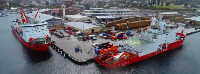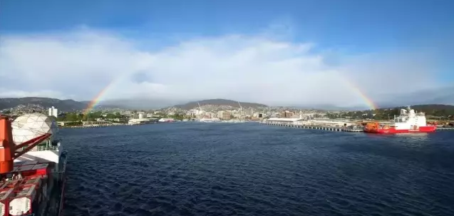 ????当地时间11月7日上午,搭载107名中国第36次南极考察队员的“雪龙”号停靠澳大利亚霍巴特港口,与先行靠港的“雪龙2”号正式汇合。