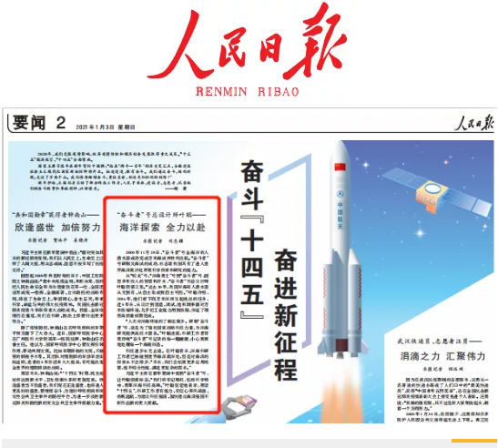1月3日,人民日报在要闻二版【奋斗“十四五” 奋进新征程】专题报道中,以“海洋探索 全力以赴”为题刊发了对中国船舶集团七〇二所副所长“奋斗者”号总设计师叶聪的专访。