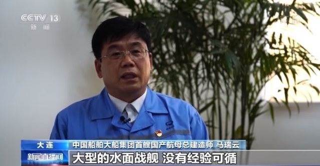 中国船舶大船集团首艘国产航母总建造师马瑞云:第一次生产这种超过300多米长的大型的水面战舰,没有经验可循。