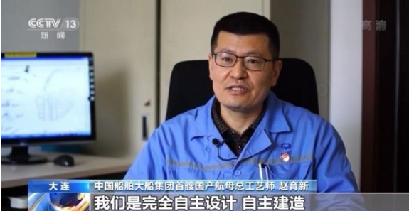 中国船舶大船集团首艘国产航母总工艺师 赵育新:从第一次海试到最后交付,在这一年半的时间里没有休息的,连轴(日以继夜)地在这个工程上,一起拼搏。