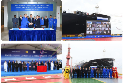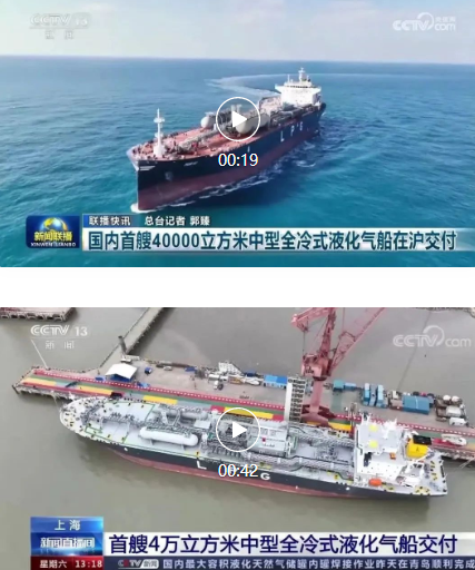 3月31日,中国船舶集团旗下江南造船联合中船贸易为日本KUMIAI公司建造的40000立方米中型全冷式液化气船(MGC)“MIRAI”号顺利交付,中央电视台《新闻联播》 《新闻直播间》对此进行了报道。