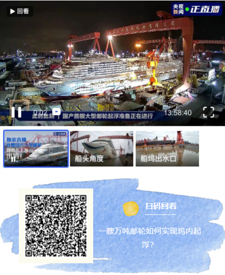 别急,央视新闻还为您准备了近14个小时的超长直播,回看一起见证我国首艘大型邮轮起浮全过程!
