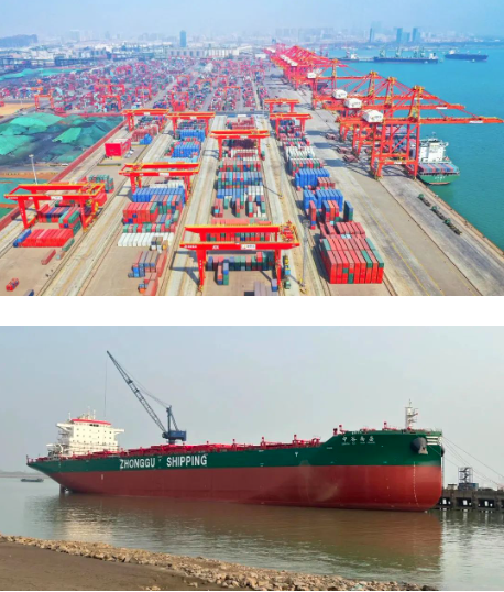 在公开照片中,与习近平总书记“同框”的,正是中国船舶集团旗下武汉船机、七一六所参与建设的日照港顺岸开放式全自动化集装箱码头,以及上船院设计、汾西重工提供关键配套的4600箱集装箱船“中谷南昌”号。