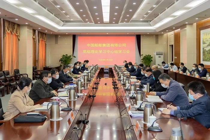 ????3月18日,中国船舶集团有限公司召开2020年第一次党组理论学习中心组学习会,深入学习贯彻习近平总书记关于统筹推进疫情防控和经济社会发展的系列重要讲话精神和重要指示批示精神,《中国共产党国有企业基层组织工作条例(试行)》和《党委(党组)书记抓基层党建工作述职评议考核办法(试行)》,2020年全国组织部长会议、全国宣传部长会议、全国统战部长会议精神。中国船舶集团党组书记、董事长雷凡培主持会议。中国船舶集团党组成员结合工作实际,分别谈了学习体会。
