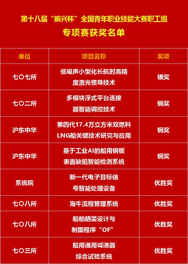 船舶青年在第十八届“振兴杯”全国青年职业技能大赛和创新创效竞赛中获佳绩