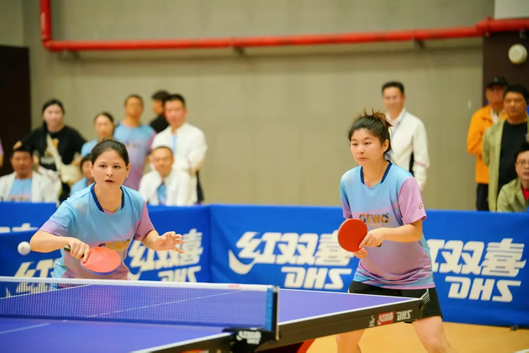 比赛采用混合团体赛制,赛场上,男单的凌厉、女单的灵巧、双打的默契、混双的配合,精彩场面层出不穷。运动员们身姿矫健,发球、对拉、扣杀等动作行云流水,白色的乒乓球在球台上方划出一道道灵动的弧线,每一个回合都展现着智慧与力量的较量;赛场下,各代表队的啦啦队员举着队旗为队友加油助威,掌声、喝彩声与银球飞舞的节奏交织成一曲活力的乐章,浓厚的竞技氛围中满是“一家人、一盘棋”的融融暖意。