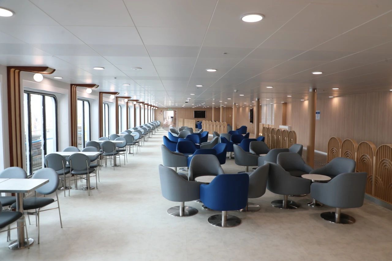 船上可供旅客自由活动的公共区域面积达到6000平方米,设计有自助餐厅、咖啡厅、观光厅、披萨店、免税店、航空坐席区、儿童游乐区、露天酒吧等休闲娱乐场所。
