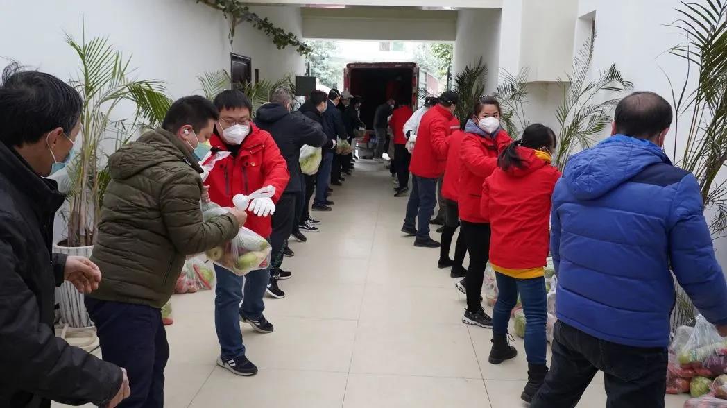 元旦前,东仪科工100余位党员、职工火速集结组成志愿团队,有序对16辆汽车运来的物资进行卸载、分装,忙而不乱,将一袋袋蔬菜分楼栋、分单元送到居家隔离的住户手中,确保3200余户居民在新的一年到来之前收到政府的爱心物资,满足基本生活需求。