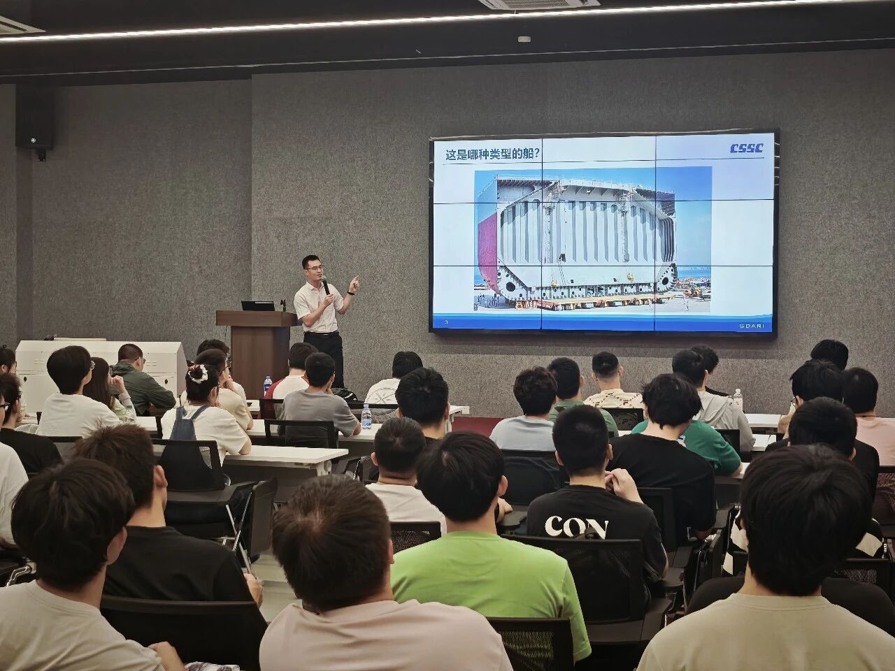 ? 在武汉,武昌造船团委将前沿知识送入高中校园。设计院博士为新洲一中的学生们带来“新能源与新能源船舶发展”讲座,从“双碳”目标到能源迭代,深入浅出的讲解为学子们开启了一段深蓝科技之旅。