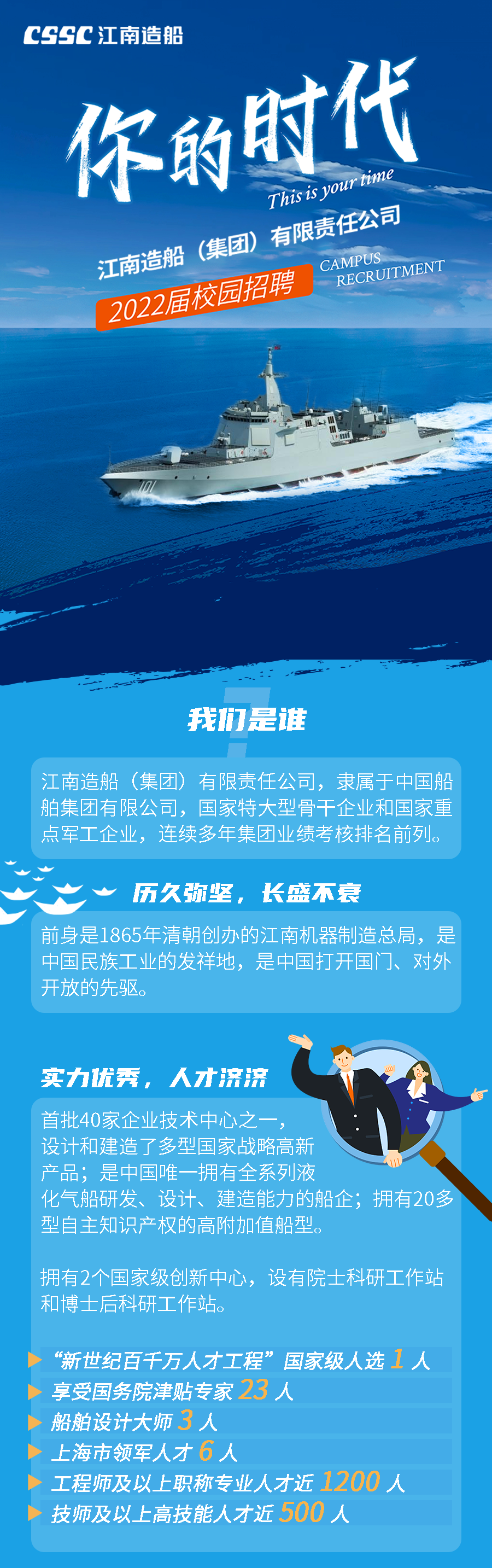 中国船舶集团旗下 江南造船、中国舰船研究院 校园招聘大幕已拉开 快来中国船舶 开启你的时代