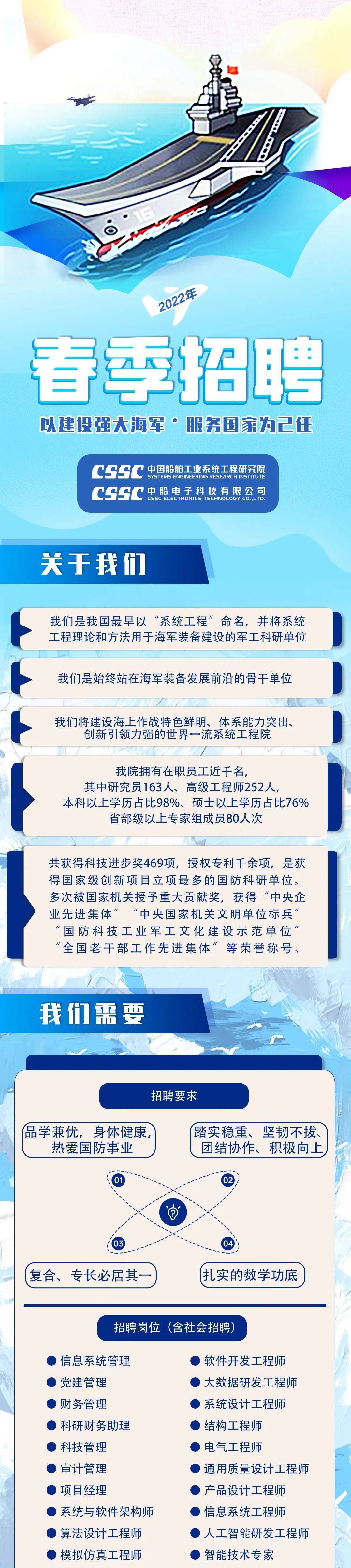 战舰闪耀,飞鲨翱翔。 大国重器,强国担当! 这里招贤纳士,虚位以待, 让我们一同感受星辰大海, 让我们并肩共赴深蓝梦想, 这里必将因你而更加精彩!