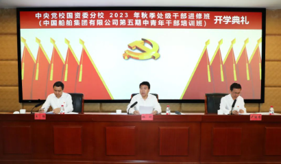 为深入贯彻落实习近平新时代中国特色社会主义思想和党的二十大精神,推动年轻干部坚定理想信念、强化规矩意识、提高管理能力,9月18日,中央党校国资委分校2023年秋季处级干部进修班(中国船舶集团第五期中青年干部培训班)在京开班。中国船舶集团党组副书记、董事、党校校长杜刚出席开学典礼并讲话。
